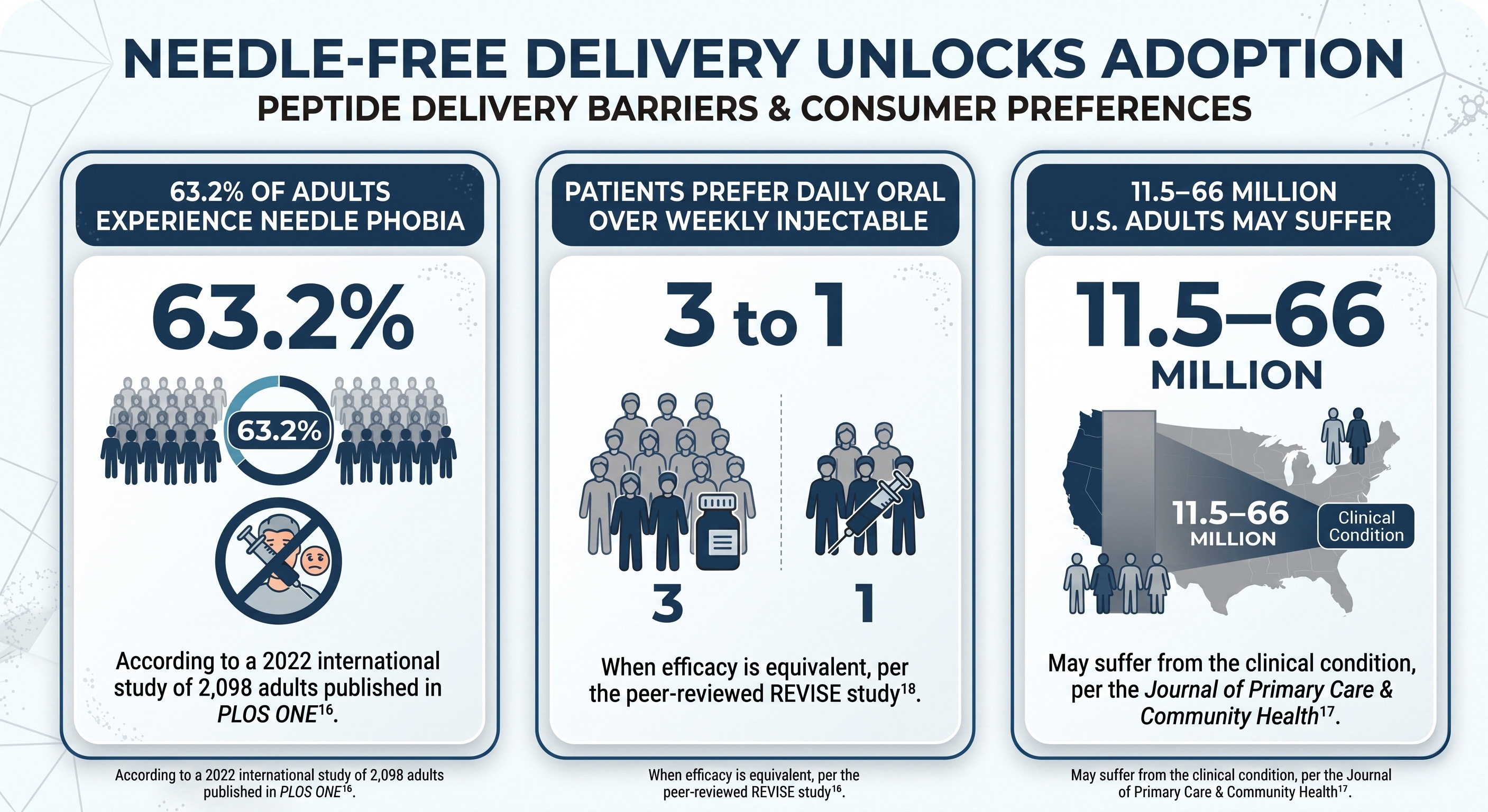 Peptides became the biggest drug class in pharma – even with self-injection as the primary delivery method. But for many consumers, that requirement remains a barrier. The published data on how adults feel about needles is unambiguous: